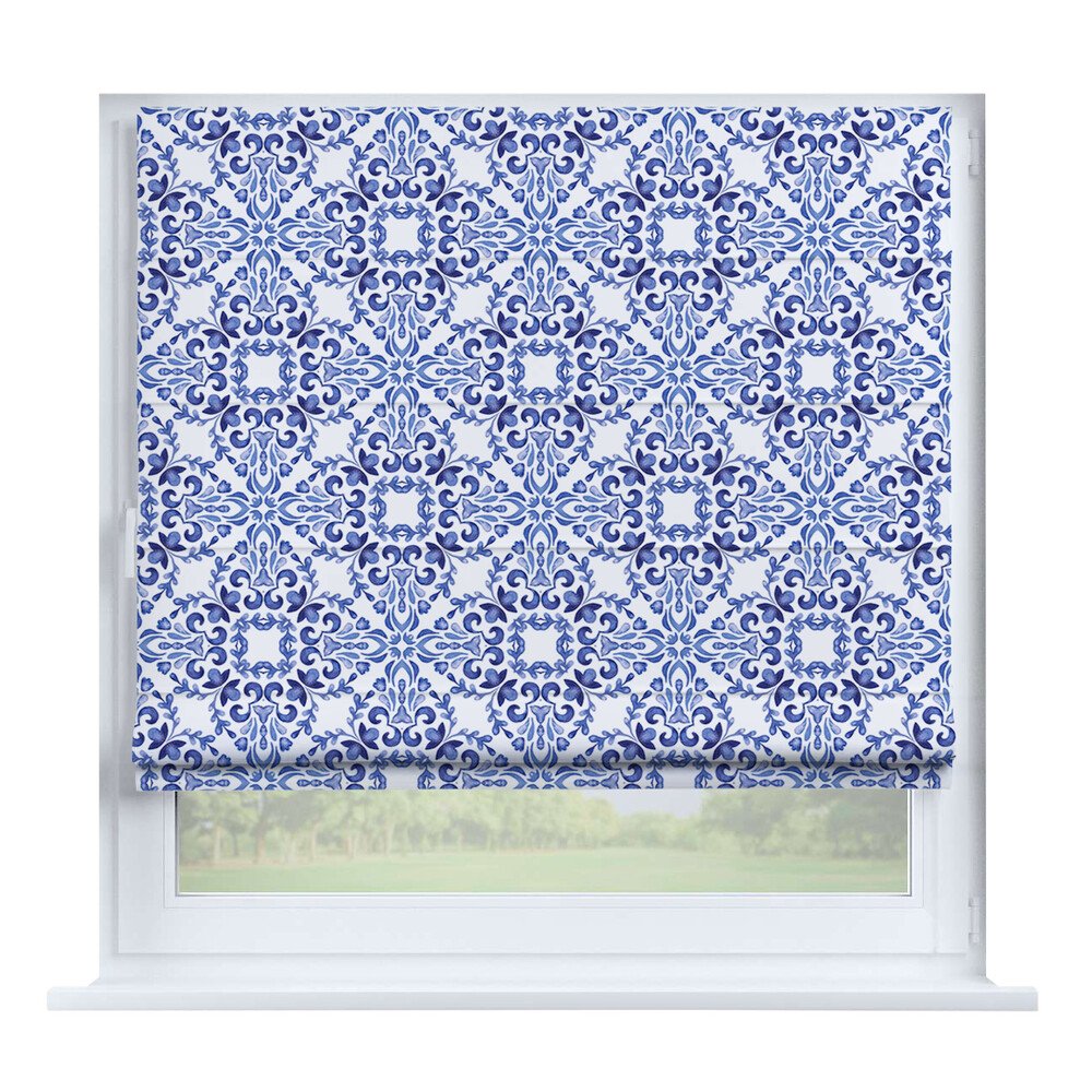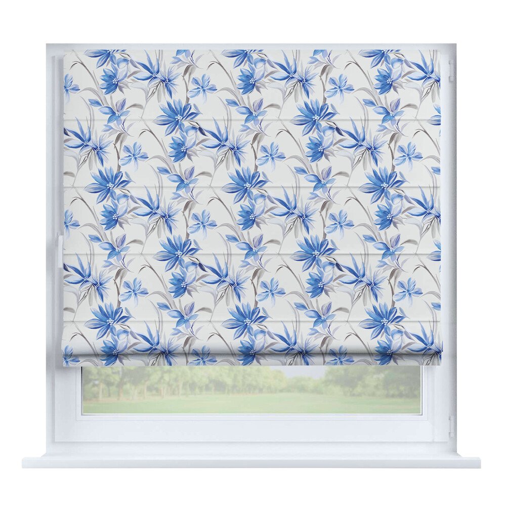 Римская штора на створку ткань вельвет васильковый, карниз верёвочный